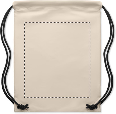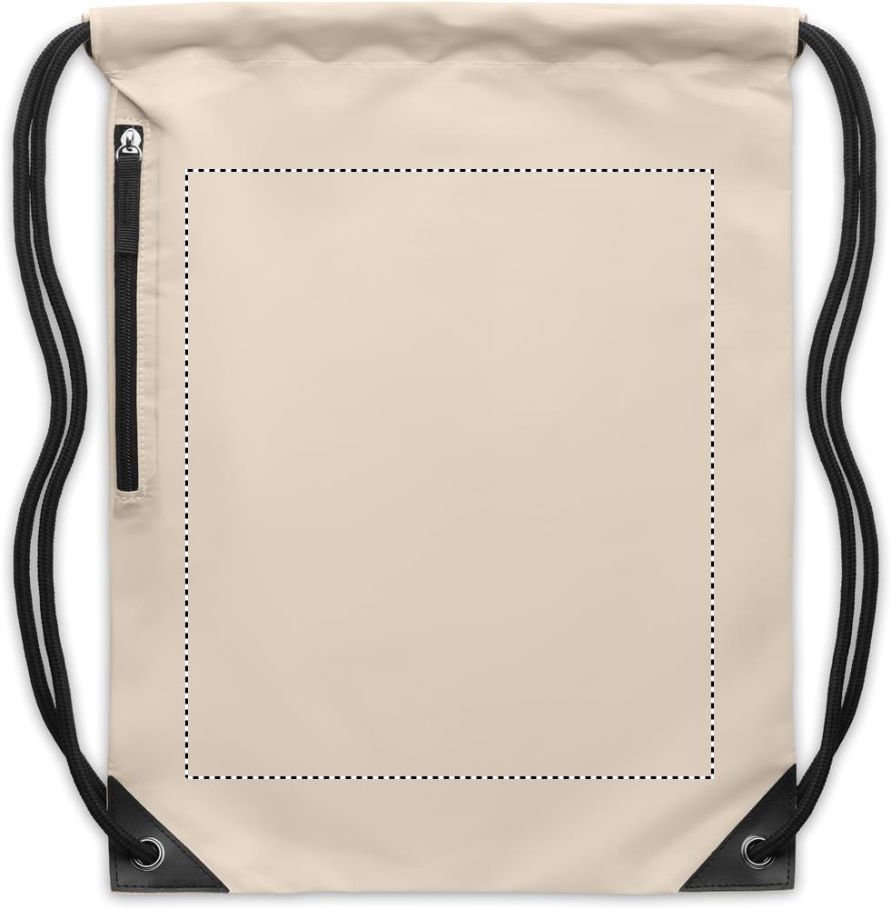 Modern gympa påse i 190T polyester med lätt reflekterande yta. Innehåller en ficka med dragkedja på ena sidan och kraftiga remmar.