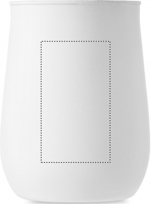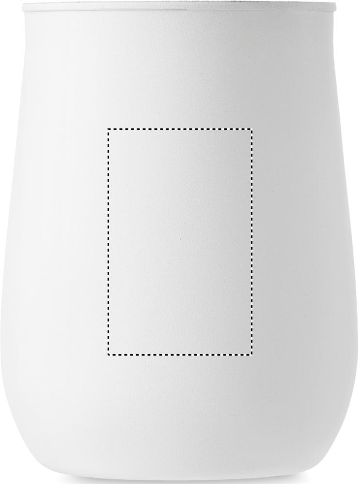 Återvunnet rostfritt stål (90 % återvunnet rostfritt och stål 10 % rostfritt stål) pulverlackerad mugg med lock med glidande dragkedjehål. Kapacitet: 500 ml.