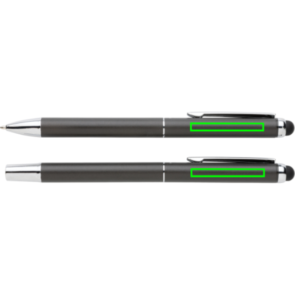 Swiss Peak lyxigt pennset består av en kulspetspenna och en rollerball-penna. Båda pennorna är i aluminium och har en matt gunmetal finish. Båda pennorna har blått Dokumental-bläck. Skrivlängden för kulspetspennan är 1200 meter och för rollerball-pennan 400 meter. Pennsetet levereras i ett lyxigt fodral i PU och svart giftbox.