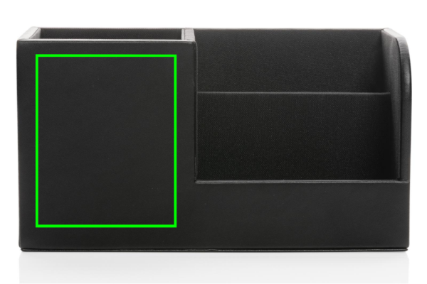 Lyxig skrivbordsorganisatör perfekt för förvaring. Tillverkad av RCS (Recycled Claim Standard) certifierade återvunna material. RCS certifiering säkerställer en helt certifierad leveranskedja av de återvunna materialen. Den smidiga och lyxiga skrivbordsorganisatören uppgraderar ett skrivbord till en bra arbetsplats. Ytterhöljet är tillverkat av RCS certifierad återvunnen PU. Material insida: MDF trä. Totalt återvunnet innehåll: 6,5% baserat på total produktvikt. PVC-fri.