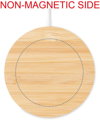 Magnetisk trådlös laddare av bambu. Ladda din smartphone trådlöst med denna laddningsplatta. Eftersom den har en magnet inuti kommer din telefon att kunna fästa mot den, även när du använder din telefon. Bra när du vill ladda din mobila enhet, men också vill ringa eller titta på en video. Denna laddare innehåller en extra magnetisk metallring för att stödja laddning av icke-magnetiska trådlösa laddningsbara telefoner. Kompatibel med iPhone® 12 och nyare. Utgång: DC 9V / 1.1A (10W) för snabb laddning. Bambu ger denna laddare ett mer naturligt och elegant utseende. Bambu är ett naturligt material och det kan finnas små variationer i färg och storlek per artikel, vilket kan påverka det slutliga märkresultatet.