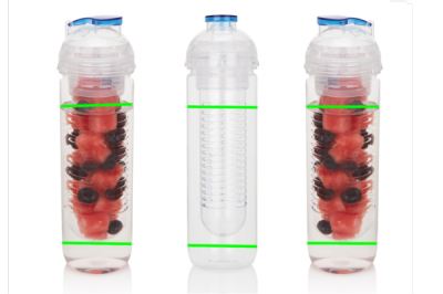 Trendig vattenflaska i miljösmart Tritan, 500ml, med inbyggd fruktbehållare som tillför ditt vatten både vitaminer och smak. Fruktbehållaren kan också användas för att kyla ner vattnet genom att lägga i iskuber.